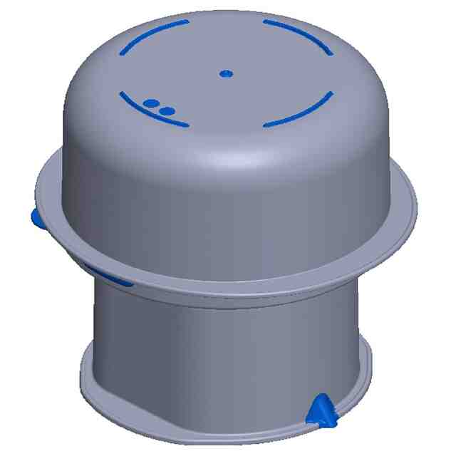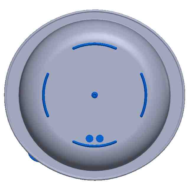 各図の表面部全面に表された濃淡は、いずれも立体表面の形状を特定するためのものである。青色で示した部分以外の部分が「部分意匠を受けようとする部分」である。また、A-A断面図およびB-B断面図に表された赤色は、断面形状のみを表すものである。