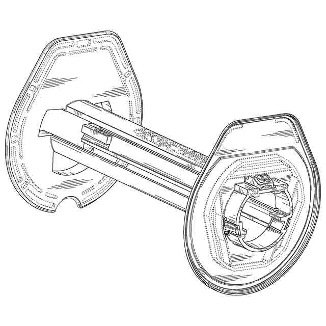実線で表された部分が、意匠登録を受けようとする部分である。図面に表されている破切れた細線及び破切れた平行状細線は、模様を表す線ではなく、いずれも立体表面の形状を表す線である。