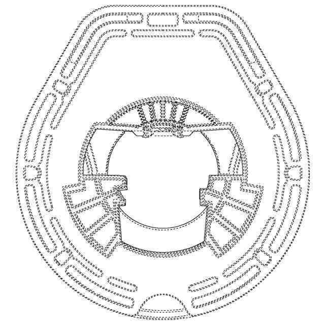 実線で表された部分が、意匠登録を受けようとする部分である。図面に表されている破切れた細線及び破切れた平行状細線は、模様を表す線ではなく、いずれも立体表面の形状を表す線である。