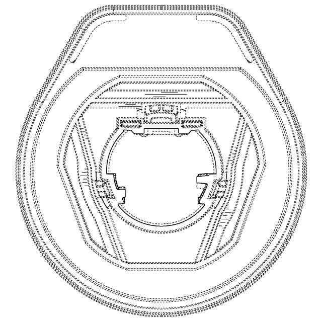実線で表された部分が、意匠登録を受けようとする部分である。図面に表されている破切れた細線及び破切れた平行状細線は、模様を表す線ではなく、いずれも立体表面の形状を表す線である。