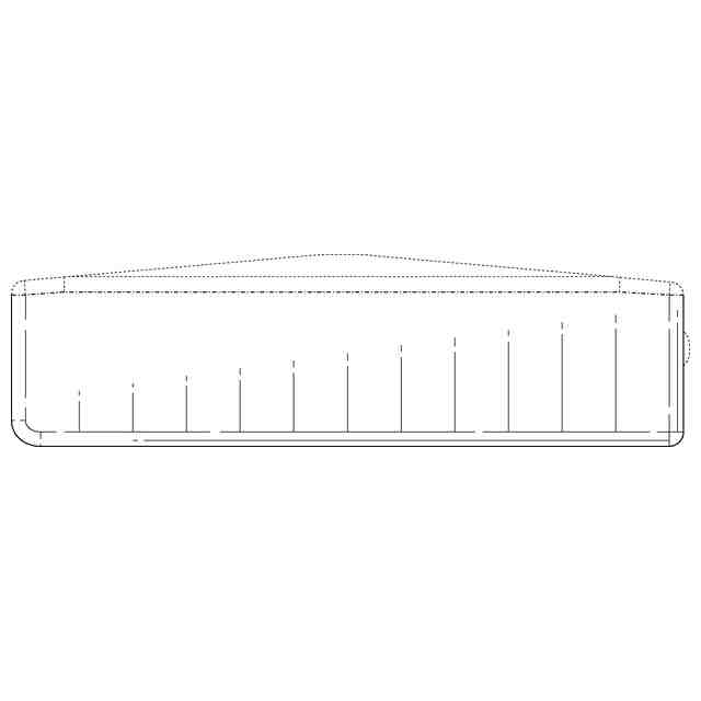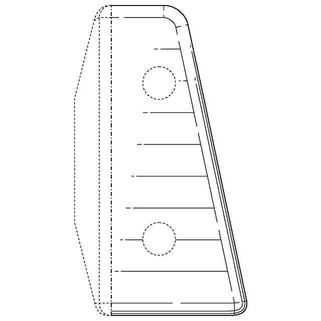実線で表された部分が意匠登録を受けようとする部分である。一点鎖線は意匠登録を受けようとする部分とそれ以外の部分との境界のみを示す線である。実線で表された部分における途切れ状細線は立体表面の形状を特定するためのものである。