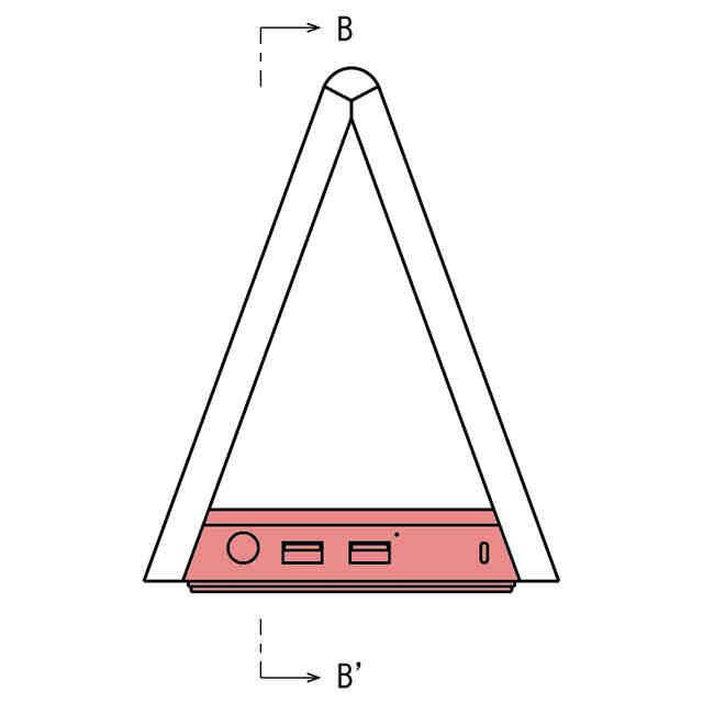 本物品は、正面と背面のそれぞれにモニターが設けられた、略中空三角柱形状の電子翻訳機である。