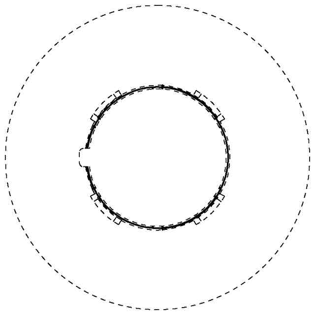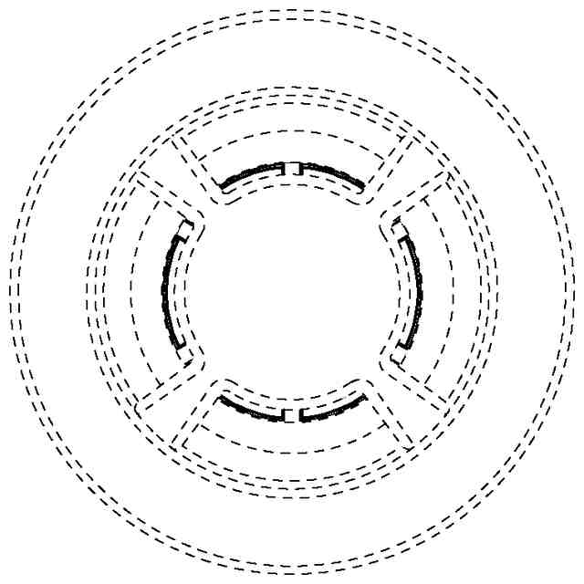実線で表した部分が意匠登録を受けようとする部分である。背面図は正面図と対称に表れる。右側面図は左側面図と同一に表れる。