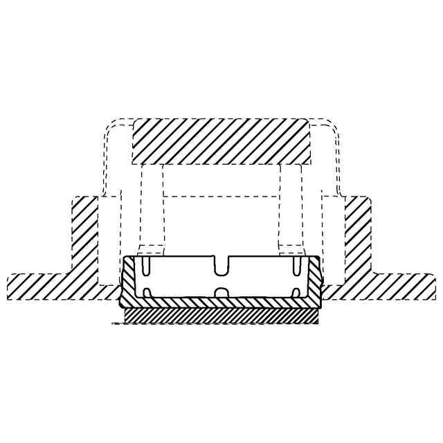 本願意匠に係る物品は、たとえばロープロファイル対応パソコンまたは屋外等多様な箇所において、各種部材を配置、接続、固定等するために使用されるものである。接着ベース部の円筒側突起は平面視60度ずつずれており、重ならない様に配置されている。本体との嵌合時に、接着ベース部の上側突起は本体に先に嵌合し、仮固定され、さらに押し込むと下側突起が本体内壁の突起と干渉し大きな抵抗が発生し接着ベース部により粘着テープを押し付け粘着テープのさらなる貼付け力を引き出すことができる。また、接着ベース部底面の中心をつなぎ合わせたことで全体的に剛性感があり、固定具本体嵌合時に接着ベース部に抵抗が発生し、粘着テープを被着体(基板)にシッカリと押しつけることが可能となるため前記粘着テープの強度を引き出すことができる。さらに力を加えることで接着ベース部が固定具本体に完全に格納され、抵抗感が抜けた時点で、押し込み完了の合図となる。