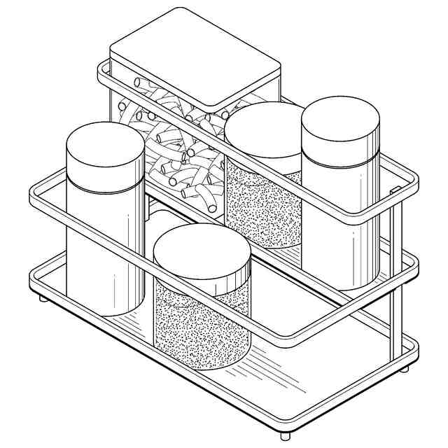 本物品は、「使用状態を示す参考図」に示すように、調味料入れなどを載置するためのキッチン用ラックである。