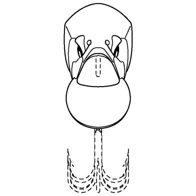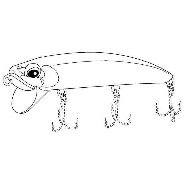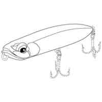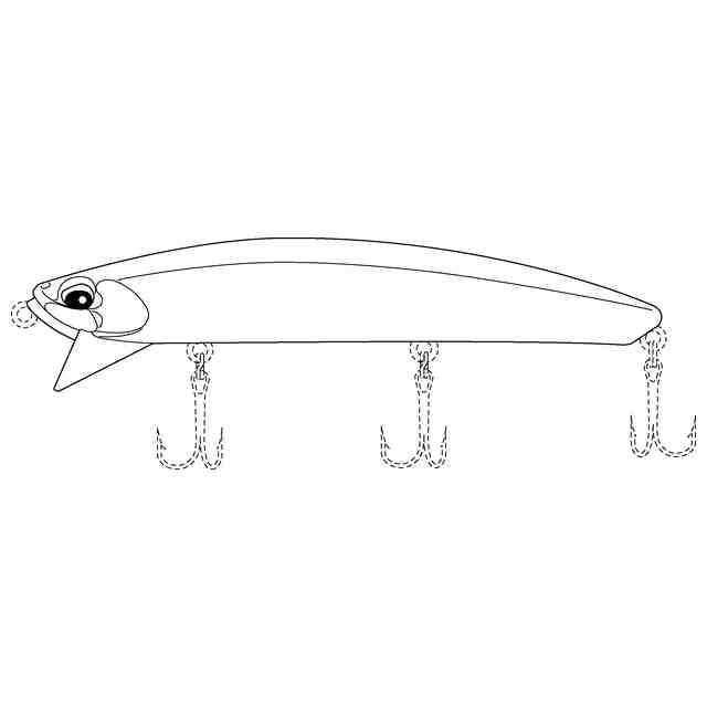 図中に実線で表された部分が意匠登録を受けようとする部分である。陰影を付加して示した参考斜視図、陰影を付加して示した参考正面図は、魚釣用ルアー表面の凹凸を明瞭にするために陰影を追加して表わした図であって、物品の表面に現される濃淡は、表面の色彩のトーンを現したものではない。