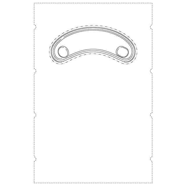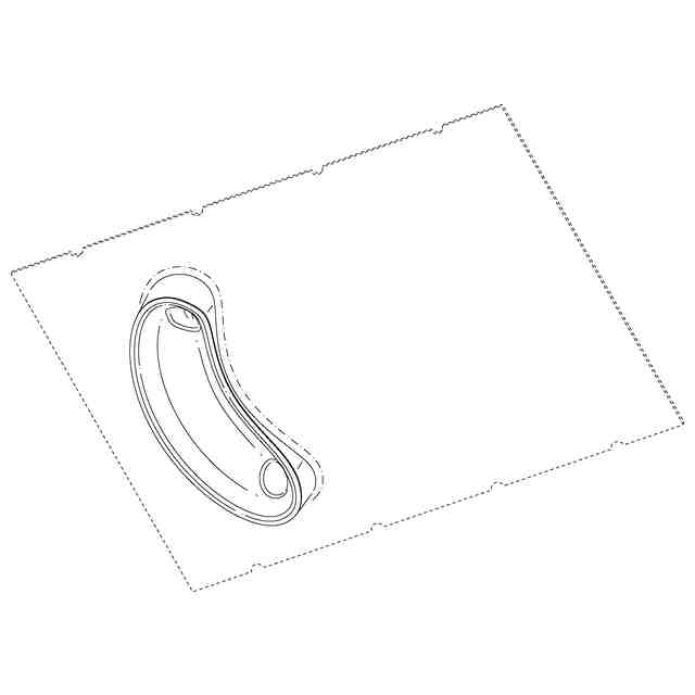 実線で表された部分が、意匠登録を受けようとする部分である。一点鎖線は、意匠登録を受けようとする部分とその他の部分との境界のみを示す線である。図面に表されている破切れた細線は、模様を表す線ではなく、いずれも立体表面の形状を表す線である。