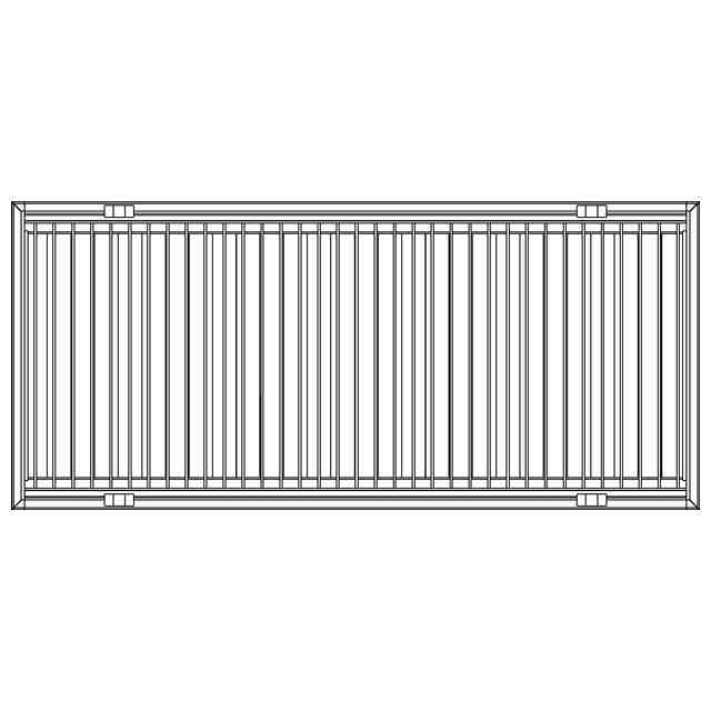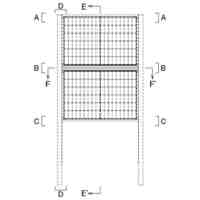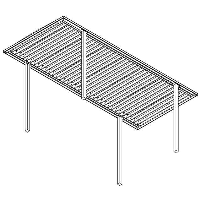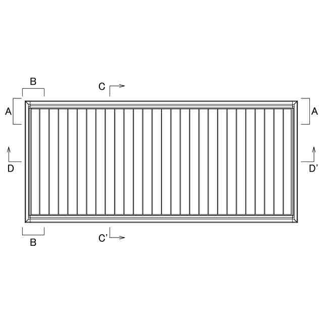 A部分におけるC-C’線断面拡大図は、平面図のA部分における平面図のC-C’線断面拡大図である。B部分におけるD-D’線断面拡大図は、平面図のB部分における平面図のD-D’線断面拡大図である。斜視図1は、本願意匠の組立上屋を正面左斜め上方から見た斜視図である。斜視図2は、本願意匠の組立上屋を正面左斜め下方から見た斜視図である。
