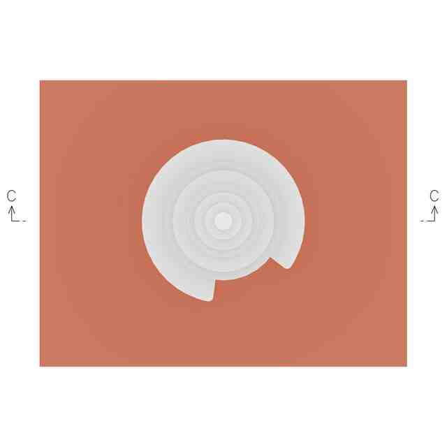 赤色に着色された部分を除く部分が、意匠登録を受けようとする部分である。斜視図及び断面図を含めて意匠登録を受けようとする部分を特定している。各図において表面部全面に表された濃淡は、いずれも立体表面の形状を特定するためのものである。この意匠登録出願の意匠は建築物内の位置を特定しない部屋の内部であり、内部の形状等を表すために、斜視図1では、天井及び手前側の壁を除いた状態で、斜視図2では、床及び手前側の壁を除いた状態で、正面図、背面図、右側面図及び左側面図では、向かい合う面の壁を除いた状態で、平面図では、天井を除いた状態であらわしている。各断面図に表された青色は、断面形状のみを表すものである。