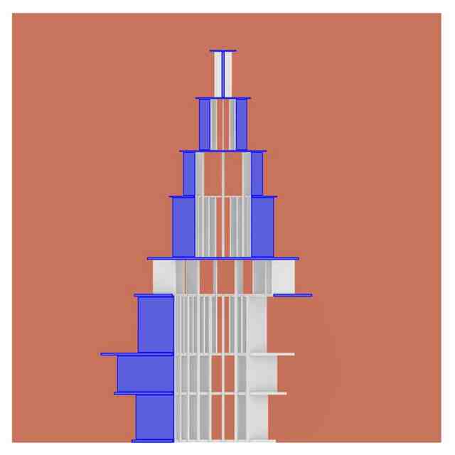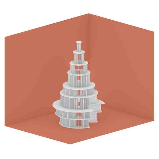 この意匠に係る建築物は、エントランスホールや店舗、執務室、住居エリア、宿泊エリア、共用スペース等を有する複合建築物である。意匠登録を受けようとする部分は、例えば、子どもたちの感性を育む体験型学習エンターテインメント施設において、オブジェとして用いられるものである。