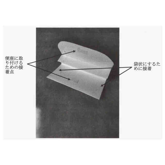 本物品は、洋式便座を昇降する為の補助紙である。補助紙には袋状部分があり、袋状部分を便座の裏面に、袋状でない部分を便座の表面にして使用する。便座の表面に親指を、便座の裏面袋状部分に他の指を入れ、つかむように昇降する。 便座をつかむ親指と他の指を入れる袋状との間、及び底面にそれぞれ折り目を施している、