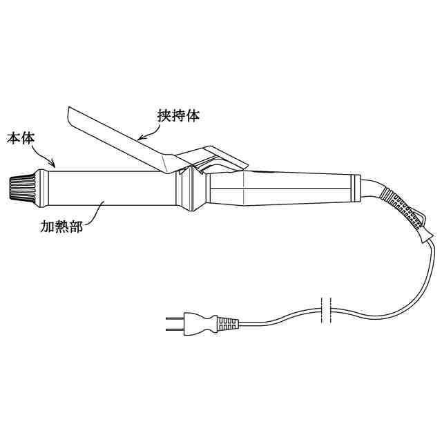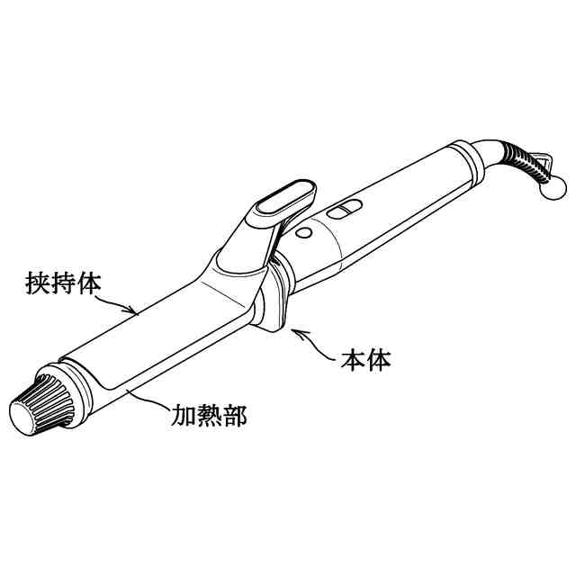 本物品は、「参考斜視図」及び「使用状態を示す参考図」に図示したように、本体に設けられた加熱部と開閉する挟持体との間に頭髪を挟持した状態で頭髪を加熱部に巻き付けることで、頭髪をカールさせるヘアアイロンである。本物品の全長は約40cmで、加熱部の直径は約32mmである。