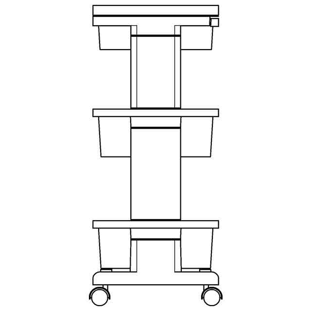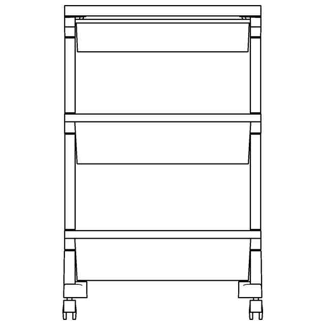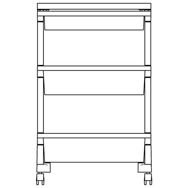 本物品は、台所用品・日用品などを収納する上部開口型収納部を上下複数段設け、最上段には天板を嵌合した引き出し付き載置用部を設けたキャスター付きの合成樹脂製の引き出し付きワゴンである。