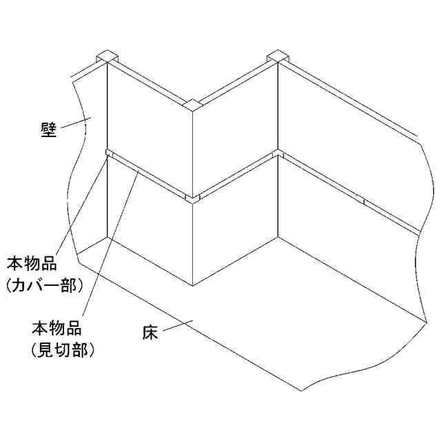 本物品は建物の壁、壁と天井の取り合いに設置される合成樹脂製の縁材に関し、直線状に延びる幅13mm、高さ4.5mmの見切部と見切部の端に取り付けられる幅14mm、高さ4.5mm、長さ23mmのカバー部を有する。