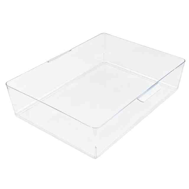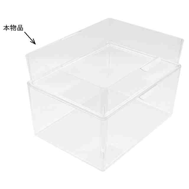 本物品は、衣類・日用品・台所用品などを収納する透明な合成樹脂製の(収納物が見える)収納ケースである。