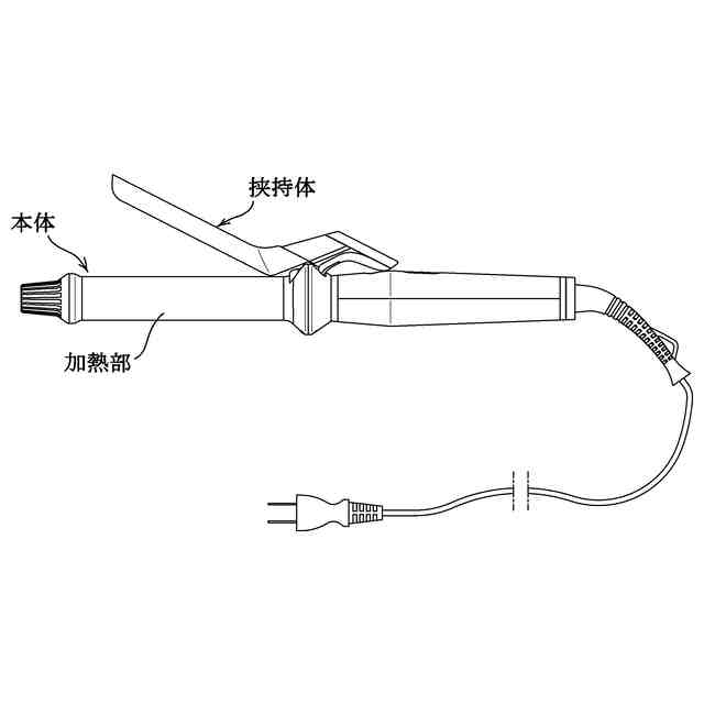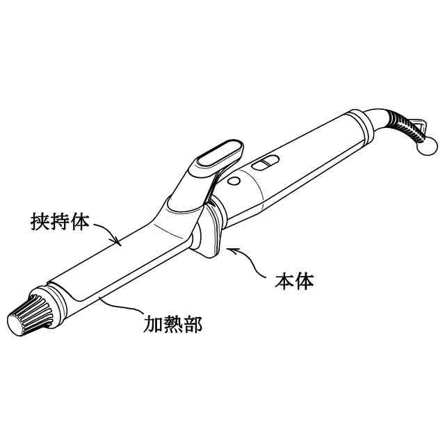 本物品は、「参考斜視図」及び「使用状態を示す参考図」に図示したように、本体に設けられた加熱部と開閉する挟持体との間に頭髪を挟持した状態で頭髪を加熱部に巻き付けることで、頭髪をカールさせるヘアアイロンである。本物品の全長は約40cmで、加熱部の直径は約26mmである。