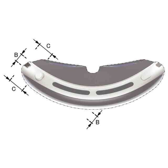 一点鎖線で囲まれた部分以外の部分、すなわち左側面側の長円形部分が、意匠登録を受けようとする部分である。表面上に表されている陰または照明等の反射を表すための濃淡は、意匠を構成しない。