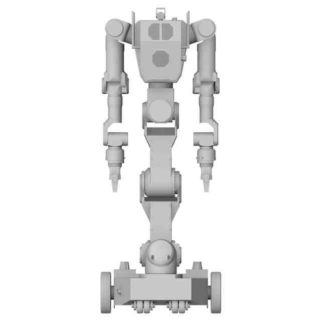 本物品は、2つのアーム部を有し、下部の駆動部により移動が可能な産業用ロボットである。