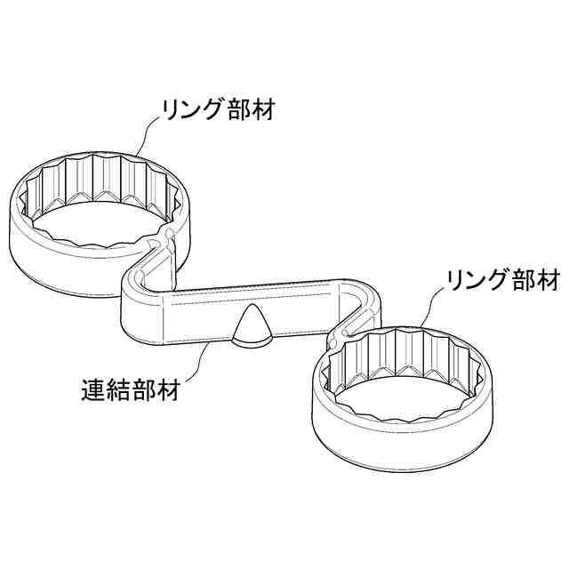 本物品は、車両のホイールナットに装着し、ホイールナットの緩みを目視により検知可能な車両用ホイールナットチェッカーである。本物品は、各部の名称を示す参考斜視図に示すように、車両のホイールナットに嵌合する二つのリング部材と、二つのリング部材を連結する正面視逆N字状の連結部材とから成る。使用状態を示す参考正面図1に示すように、本物品は、車両のホイールナットにリング部材を嵌合させることで取り付けられる。そして、使用状態を示す参考正面図2に示すように、矢印方向へホイールナットが緩むと、リング部材が連動して回転して連結部材が撓むことで、ホイールナットの緩みを目視することが可能となる。