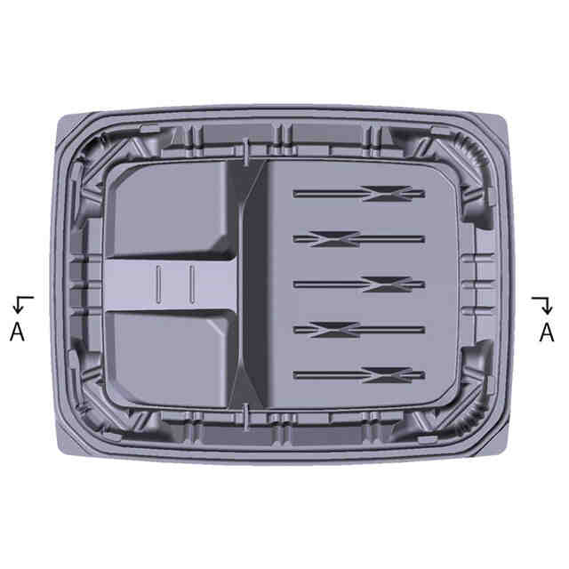 各図面の表面部全面に表された濃淡は、いずれも立体形状を特定するためのものである。なお、A-A断面図に表された青色は、断面形状のみを表すものである。