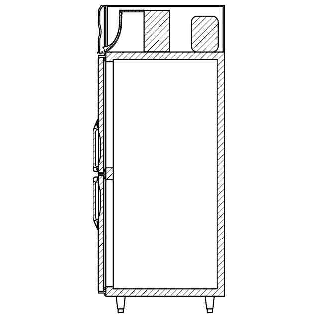 左側面図は右側面図と対称にあらわれるため省略する。参考斜視図において薄墨を施した部分は透明である。