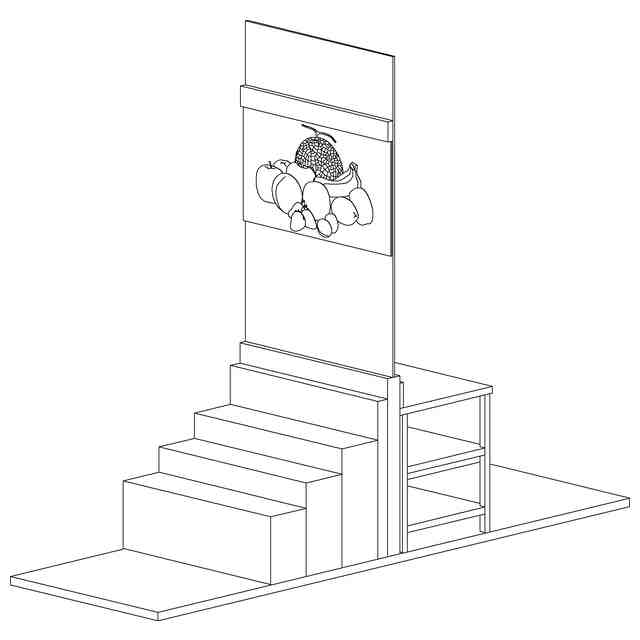 本物品は、スーパーマーケットなどの店舗の内装であって、「参考図1」に示すように、店舗において、隣接する空間である売り場とバックヤード、これらの空間を仕切る天井に達する窓とその売り場側に設置した透過性有機ELによる表示板を含むものである。「参考図2」に示すように、透過性有機ELによる表示板は、通電状態、非通電状態を通じて透光性を有し、窓も透光性を有するため、売り場とバックヤードは、ユーザーをして視覚的に一続きの空間として認識される。「参考図3」に示すように、透過性有機ELによる表示板には、通電状態において、静止画及び動画やPOP等の情報が表示されるため、買い物客は、表示板に表れた情報を確認しつつ、買い物を続けることができる。
