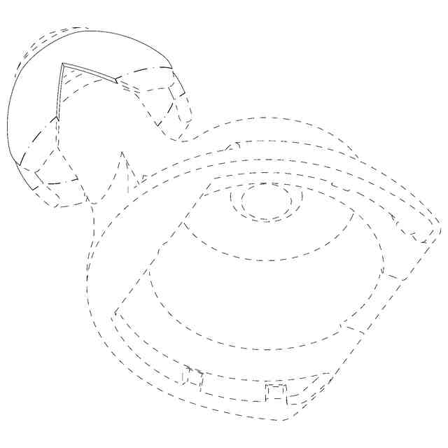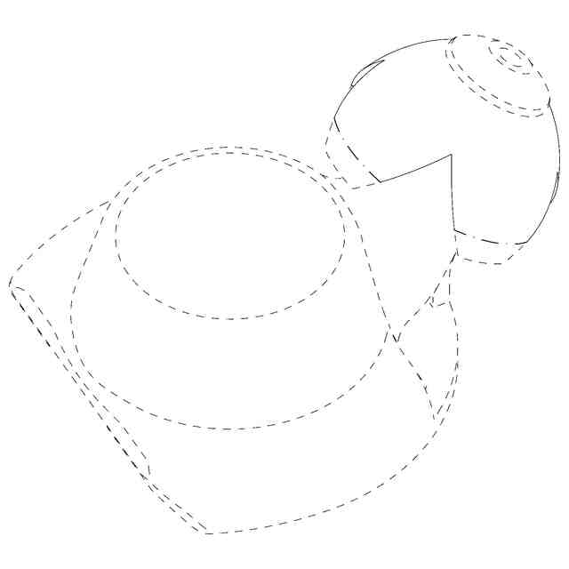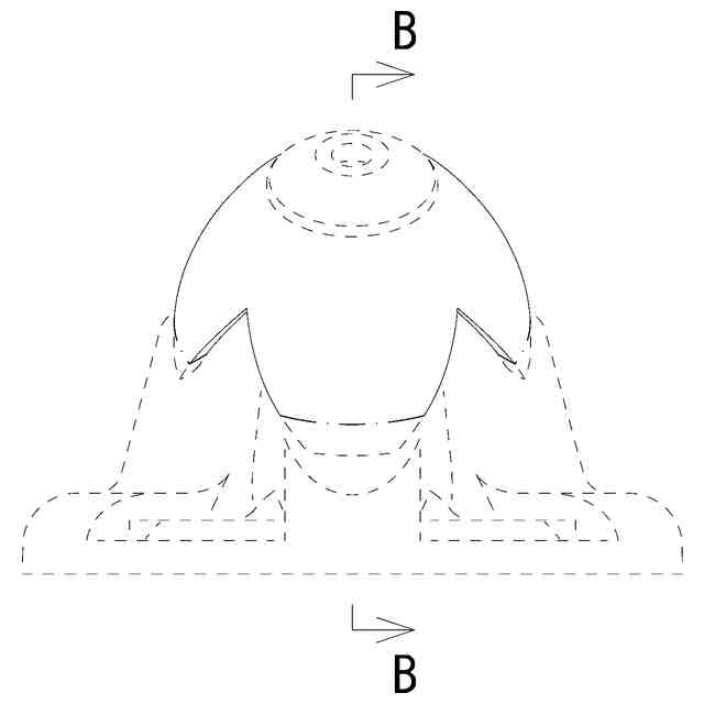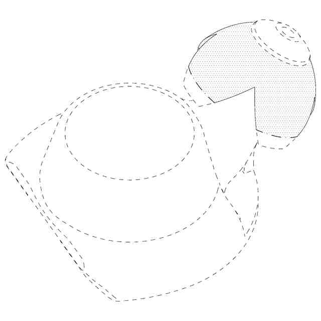 意匠登録を受けようとする部分は耳穴挿入部に係る。実線で表された部分が、部分意匠として登録を受けようとする部分である。一点鎖線は、部分意匠として意匠登録を受けようとする部分とその他の部分との境界のみを示す線である。請求部分を示す参考図において、網点部は意匠登録を受けようとする部分を示す。背面図は正面図と対称に表れるため省略する。