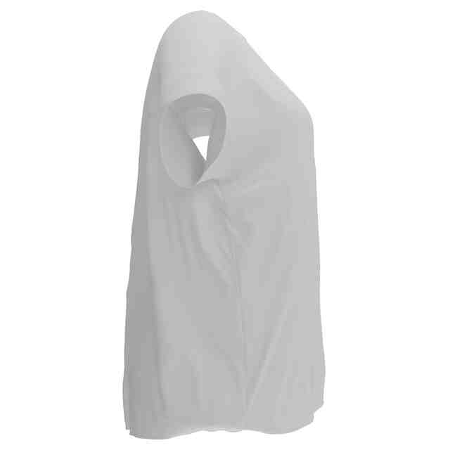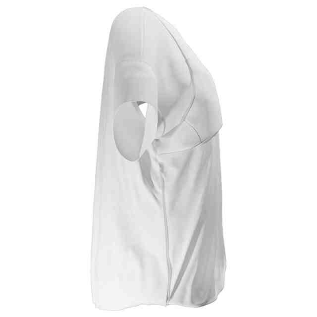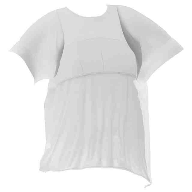 Tシャツの裏面には、以下の裏地が縫い付けられる。裏地は、略台形状をなし、裏地の上部が両肩からネックラインに沿ってTシャツに縫い付けられる。また、両腕の袖ぐりの下端がTシャツに縫い付けられる。両腕の袖ぐりの部分と、裏地の下部は、Tシャツに縫い付けられない。裏地のバスト部分は、ポリウレタン・パッドを収納可能に生地が全周に縫い付けられる。裏地と生地によりポケットが形成され、ポリウレタン・パッドが収納される。この生地は、肌のために作られたソフトでしなやかな生地であり、胸の下にぴったりとフィットする。このため、ブラジャーを着用しなくても、Tシャツから乳首が見えないようになる。Tシャツの胸の下部には、ブラジャーのようなゴムを設けていないため、締め付け感が低減され、着心地がよくなり、快適に長時間の着用が可能になる。