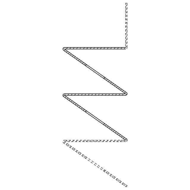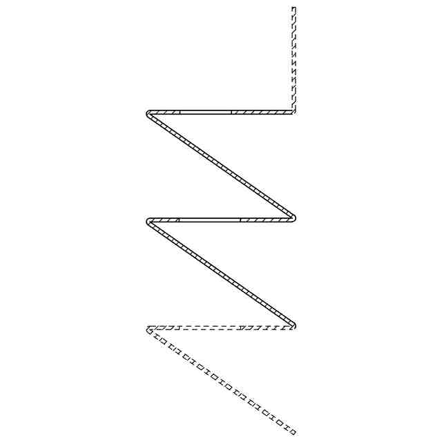 実線で表した部分が、意匠登録を受けようとする部分である。一点鎖線は、意匠登録を受けようとする部分と、その他の部分との境界のみを示す線である。左側面図は、右側面図と対称に表れるため省略する。この意匠は、正面図において、左右にのみ連続するものである。