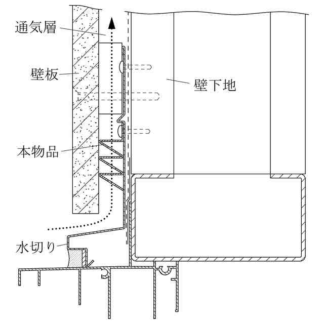 本物品は、建物の通気性を確保するために用いられる通気部材である。使用状態を示す参考図に示すように、本物品が取り付けられた建物は、壁下地と壁板との間の通気層と屋外とで通気を行うことができる。