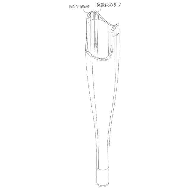 本物品は、体温計を収納する体温計用収納ケースである。使用状態を示す参考図に示すように、体温計の一部が露出した状態で、本物品に体温計が収納される。各部の名称を示す参考図に示すように、本物品の内面の左右両側には、体温計を固定するための固定用凸部と、体温計が裏向きに誤挿入されるのを防ぐための位置決めリブがそれぞれ設けられている。