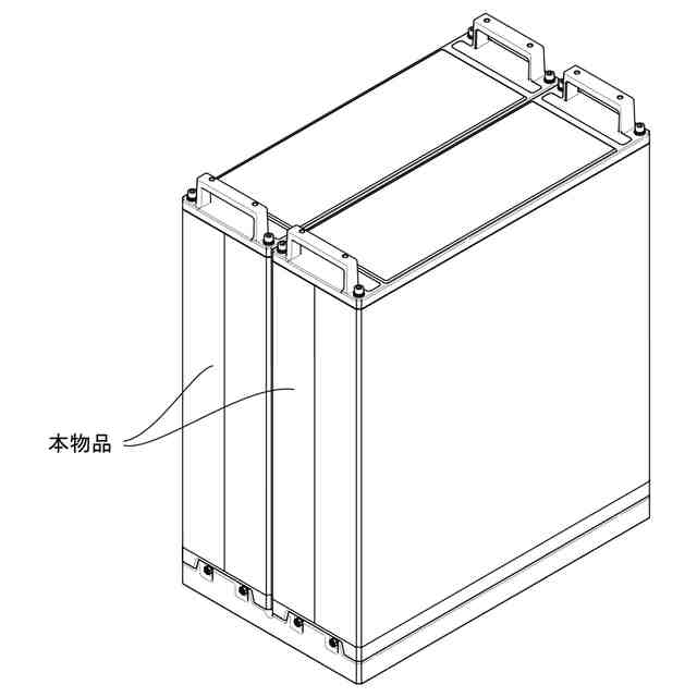 本物品は、上面に制御部を取り付けて蓄電池として使用する蓄電池モジュールである。本物品は、「使用状態の一例を示す参考斜視図」に示すように、複数個を並べて使用することもできる。