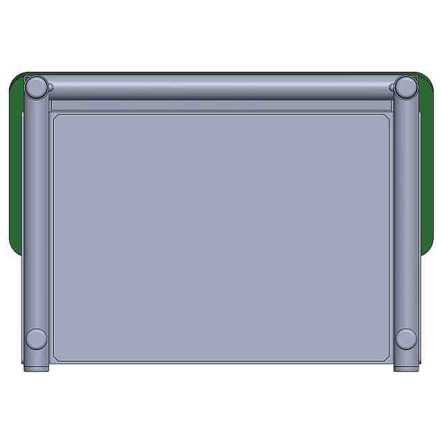 緑色で着色された部分以外の部分が、意匠登録を受けようとする部分である。各図に表された濃淡は、いずれも立体表面の形状を特定するためのものである。正面図中央縦断面図に表された赤色は、断面形状のみを表すものである。左側面図は右側面図と対称に表れる。