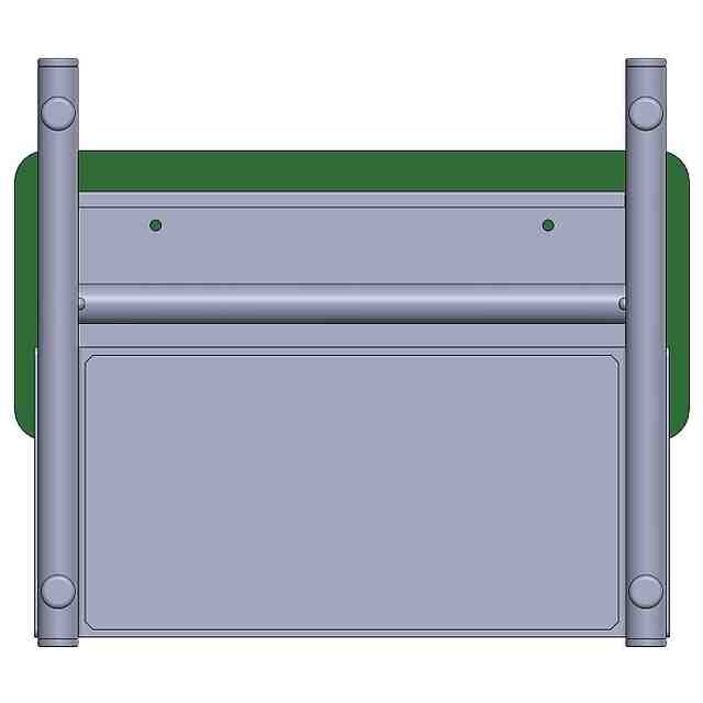 緑色で着色された部分以外の部分が、意匠登録を受けようとする部分である。各図に表された濃淡は、いずれも立体表面の形状を特定するためのものである。正面図中央縦断面図に表された赤色は、断面形状のみを表すものである。左側面図は右側面図と対称に表れる。