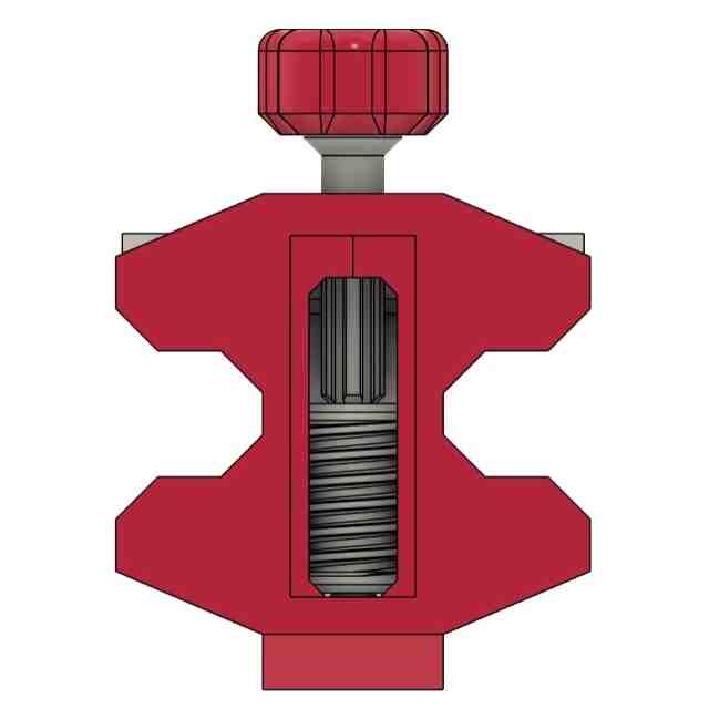 赤色で着色した部分以外の部分が、部分意匠として意匠登録を受けようとする部分である。具体的には、ハンドルから伸びたウォーム-ギア機構部分とスタンド部分である。