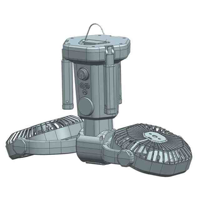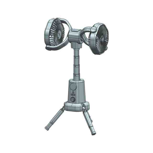 本物品は、高さ調整が可能であり、吊り下げて使用することもできる扇風機である。