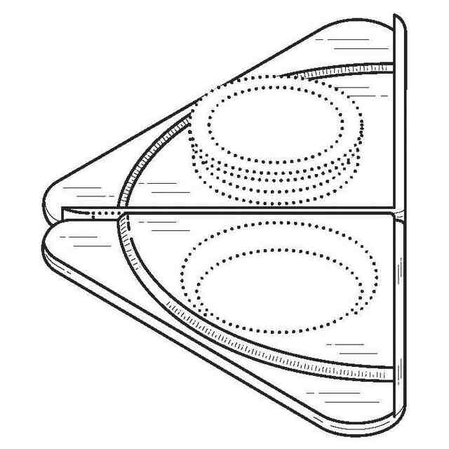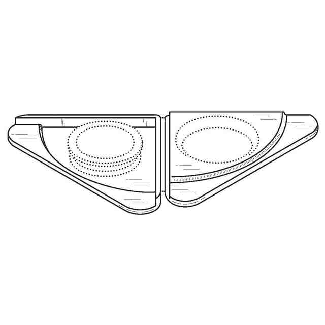 実線で表した部分が、意匠登録を受けようとする部分である。各図の表面部に表された細線は、いずれも立体表面の形状を表す線である。