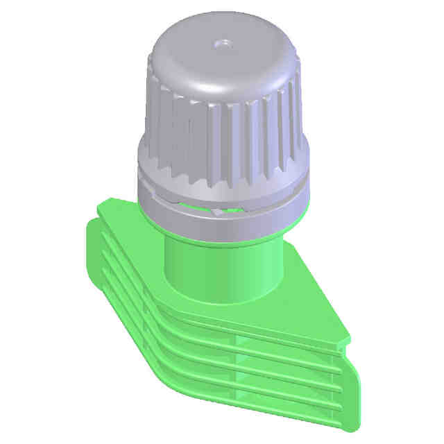 本物品は、主として液体などの内容物を充填して使用するスパウト付きパウチ容器の注出口に被せる改ざん防止付きキャップである。