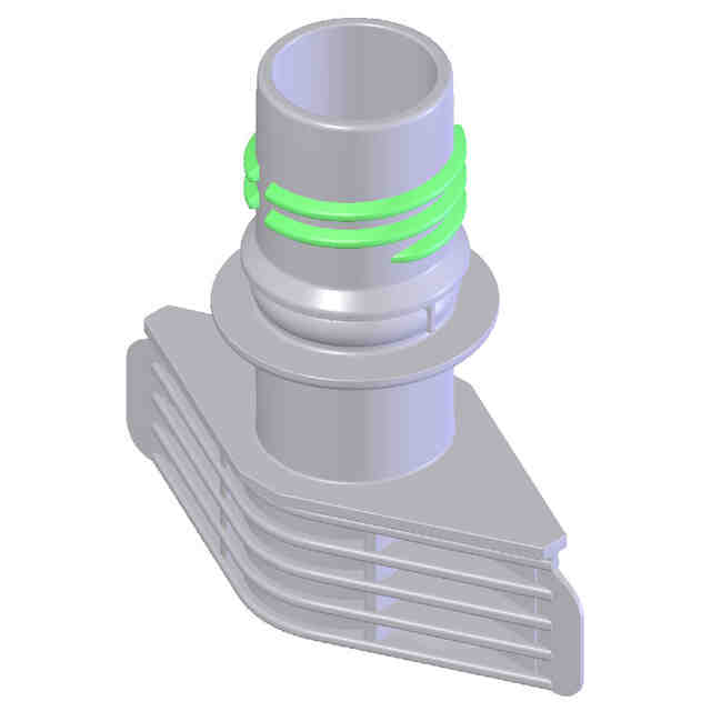 本物品は、主として液体などの内容物を充填して使用するパウチ容器の開口部分に熱溶着して取り付けられるスパウトである。