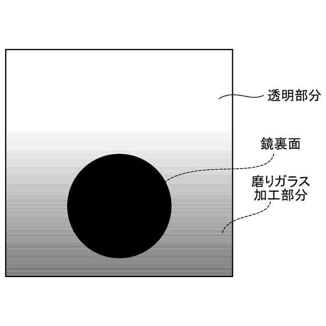 「ガラス板を外した状態の背面図」は「背面図」と同一に表れるので、「ガラス板を外した状態の背面図」を省略した。「ガラス板を外した状態の左側面図」は「ガラス板を外した状態の右側面図」と対称に表れるので、「ガラス板を外した状態の左側面図」を省略した。「ガラス板を外した状態の平面図」は「平面図」と同一に表れるので、「ガラス板を外した状態の平面図」を省略した。「ガラス板を外した状態の底面図」は「底面図」と同一に表れるので、「ガラス板を外した状態の底面図」を省略した。「ガラス板の左側面図」は「ガラス板の右側面図」と対称に表れるので、「ガラス板の左側面図」を省略した。「ガラス板の底面図」は「ガラス板の平面図」と同一に表れるので、「ガラス板の底面図」を省略した。「ガラス板の参考正面図」、「ガラス板の参考背面図」及び「神札を祀った状態を示す参考正面図」にある薄墨のグラデーション部分は、磨りガラス加工部分の透過率の変化を表すものであり、濃い部分は透過率が低く、薄い部分は透過率が高いことを表している。「ガラス板の参考正面図」及び「神札を祀った状態を示す参考正面図」における円形のハッチング部分は、鏡面を表している。「ガラス板の参考背面図」における円形の塗り潰し部分は、鏡面の裏側の不透明な部分を表している。