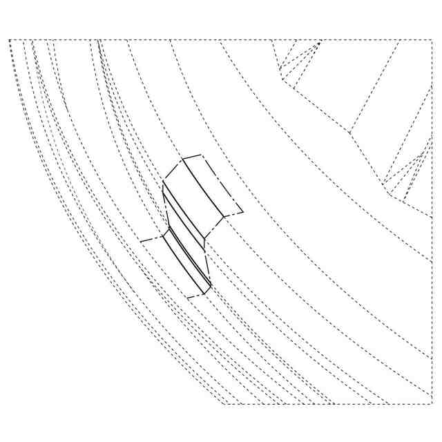 実線で表された部分が、意匠登録を受けようとする部分である。一点鎖線は意匠登録を受けようとする部分とその他の部分との境界のみを示す線である。