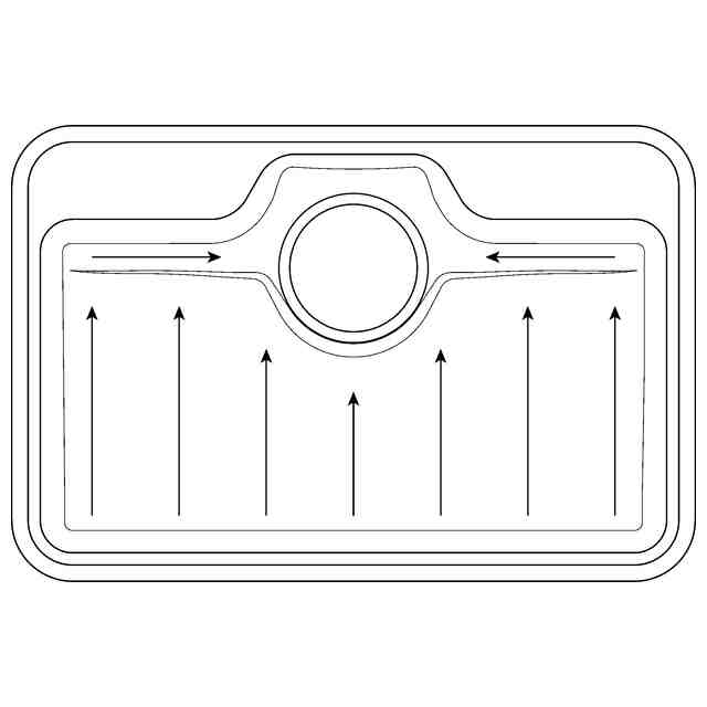 本願意匠に係る物品は、台所で使用される流し台用シンクである。参考図に図示の矢印はシンク底面での水の流れ方向を示す。