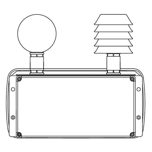 本物品は、参考斜視図に示すように、温度と湿度センサを内蔵したシェルターと、輻射熱や直射日光の影響を測定する黒球温度センサと、少なくとも暑さ指数(WBGT)を表示する表示器とを備えた熱中症指標測定表示装置である。