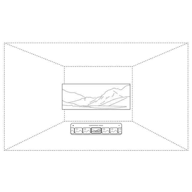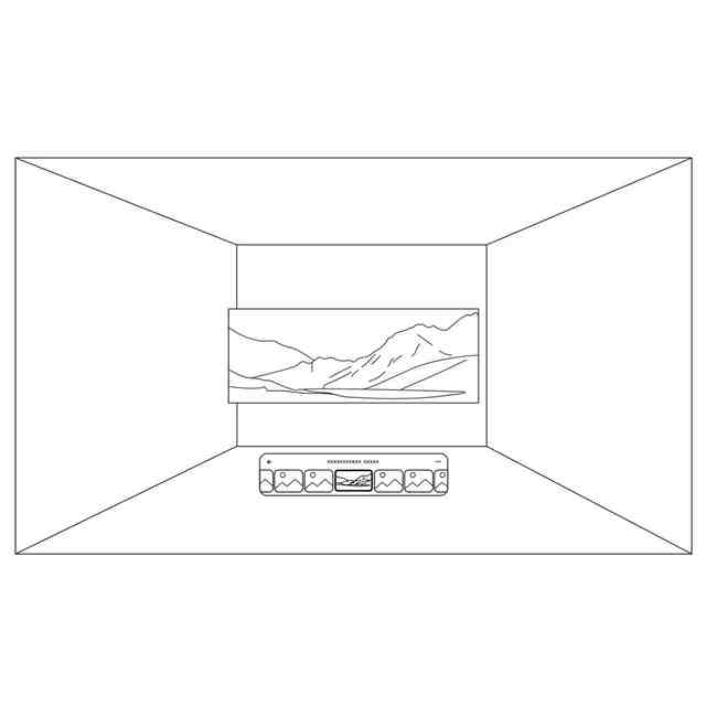 画像図に表されたGUIは、画像作品や動画作品を表示するためのものである。ユーザーは、画像図の中央やや下方に表された、横長隅丸矩形状のボックス内から他の作品をクリックし、表示する作品を切り替えることができる。