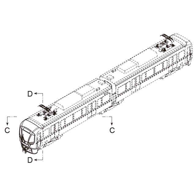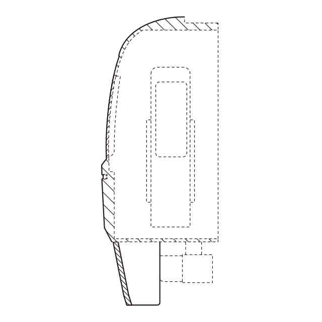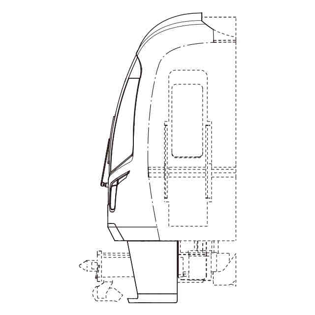 実線で表した部分が、部分意匠として意匠登録を受けようとする部分である。一点鎖線は、部分意匠として意匠登録を受けようとする部分とその他の部分との境界のみを示す線である。各図において物品の表面部に表された細線は、立体表面の形状を表す線である。底面図は重量物のため省略する。「各部名称を示す参考図」において、青色で着色を施した部分は、透明である。