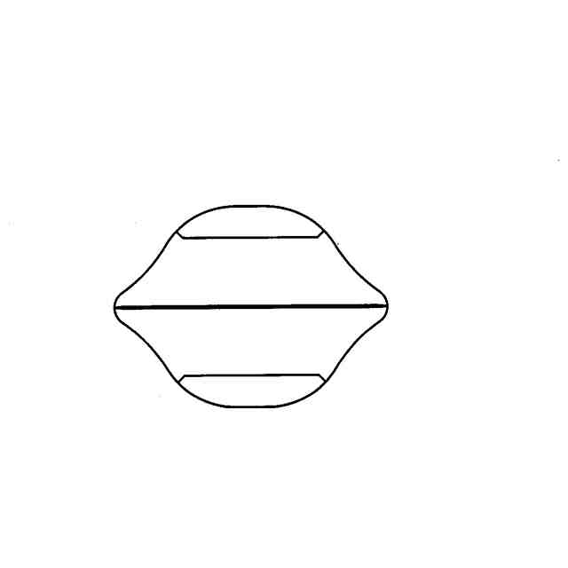 上方斜視図及び下方斜視図において、六面図以外に表わされた細線は、いずれも立体表面の形状を特定するためのものである。