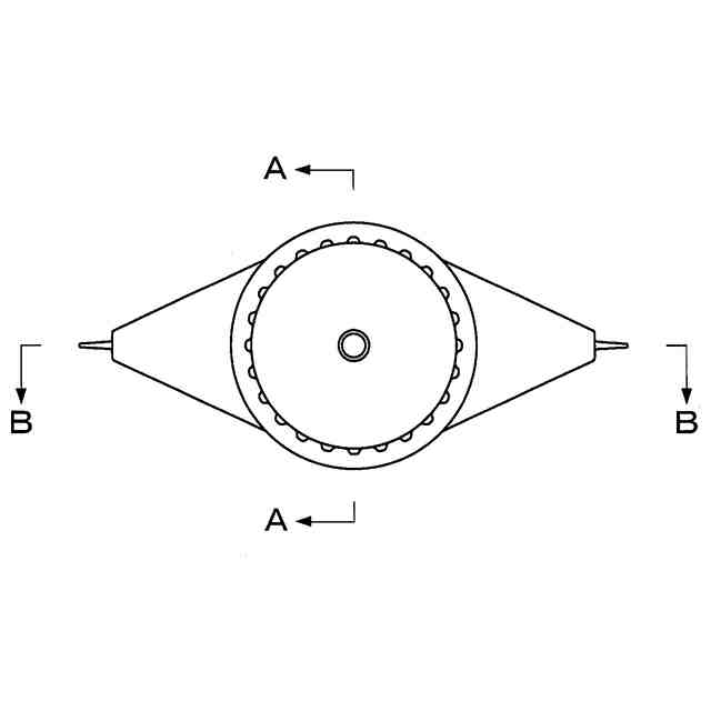 背面図は正面図と、右側面図は左側面図と、同一に表れるため省略する。上方斜視図及び下方斜視図において、六面図以外に表わされた細線は、いずれも立体表面の形状を特定するためのものである。