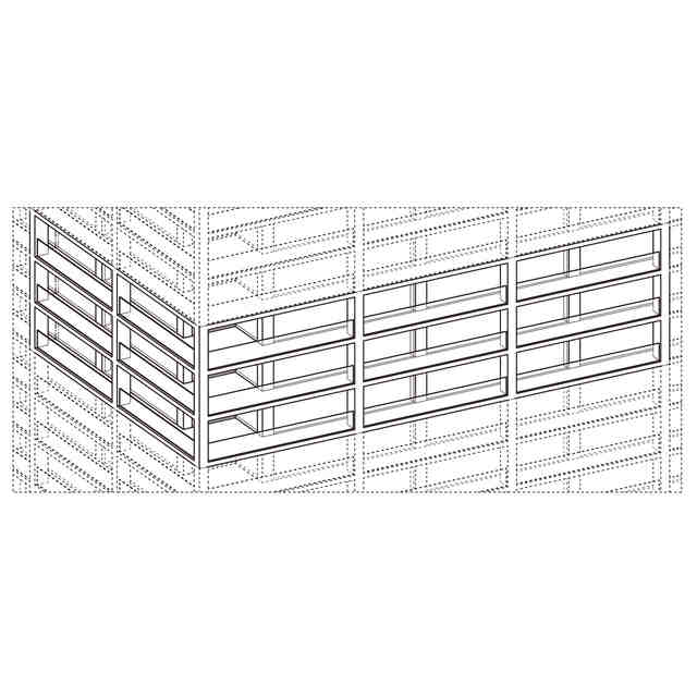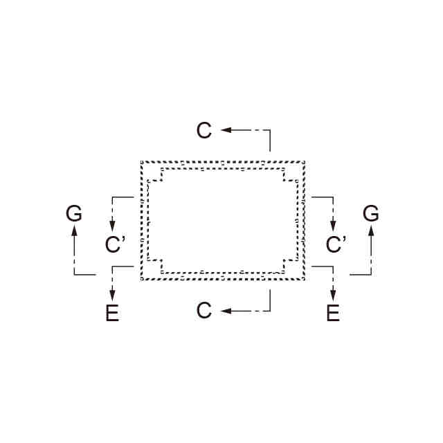 実線で表した部分が部分意匠として意匠登録を受けようとする部分である。一点鎖線は、部分意匠として意匠登録を受けようとする部分とそれ以外の部分の境界を示すもので、模様として意匠を構成しない。「底面図」は重量物のため省略する。「背面図」及び「右側面図」は、意匠登録を受けようとする部分が表れないため省略する。「各部名称及び透明部分を示す参考図1」及び「同2」において、赤色を施した部分、すなわち窓部、及び、パネル部は透明である。「拡大斜視図」は、部分意匠として意匠登録を受けようとする部分、及び、その周囲を、正面、左側面、及び、平面側から見た斜視図を拡大したものである。「C-C、C´-C´部分における拡大D-D断面図」、「E-E部分における拡大F-F断面図」、及び、「A-A部分における拡大G-G断面図」においては、内部構造を省略して作図してある。