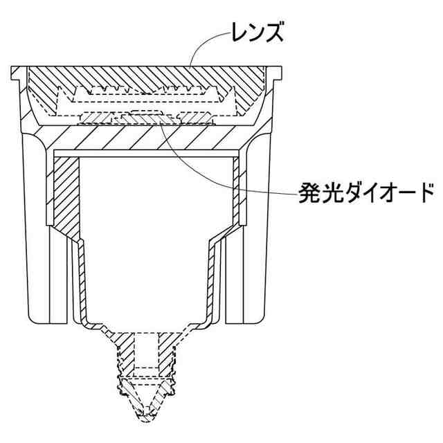 本物品は、光源となる発光ダイオードと、発光ダイオードの上部を覆い、発光ダイオードが発する光を導光するレンズを備える発光ダイオードランプである。レンズは透光性を有する。