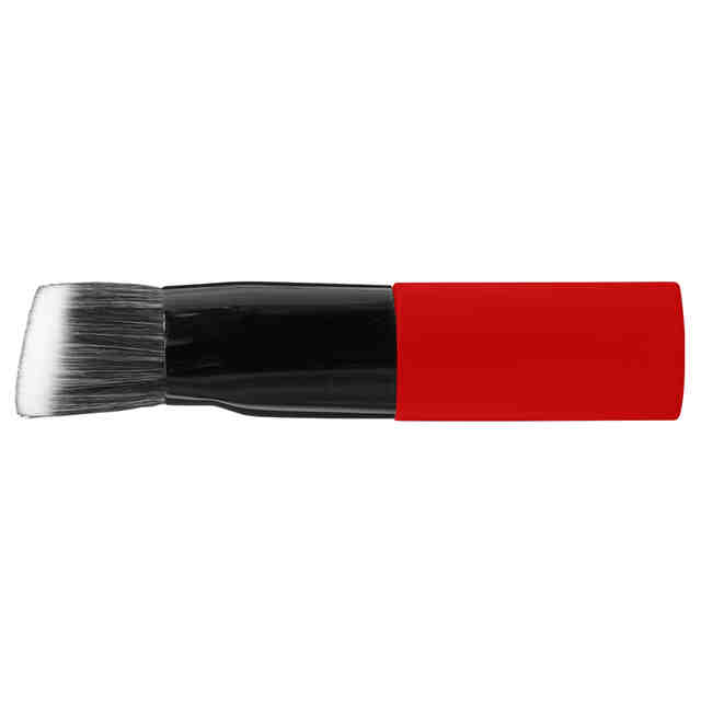 本物品は、毛束と、毛束を挟持固定する口金と、口金に接続される柄とを含む化粧用ブラシである。本物品の口金のうち毛束を挟持固定する側の断面は、直線部と円弧部とを含む半楕円形状で構成される。本物品の毛束を先端側から見た場合の先端外周は、曲率半径の異なる2つの円弧によって非対称の楕円形状を有する。毛束の先端外周を構成する2つの円弧のうち、口金の直線部側に配置される一方の円弧の曲率半径は、口金の円弧部側に配置される他方の円弧の曲率半径よりも大きい。